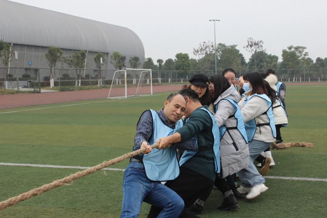 活动开始前,所有参与人员被分成两个队伍。大家穿上各自的队服,大声喊出整齐响亮的口号,在掷地有声的欢呼中,活动正式开始。活动包括了拔河比赛、踩砖块接力以及“对抗球”三个游戏部分。拔河比赛中,队员们一个个摩拳擦掌,排好阵势。当比赛的哨声响起,只见参赛的师生们紧握长绳,一同用力往后拉,踩准节奏,聚力于绳,卯足了劲拼命往后拉。哨子声、呐喊声此起彼伏,尤其在难分胜负的时候,大家也毫不退却,咬紧牙关,坚持到底。一根麻绳,系住凝聚力,拧住拼搏风采。